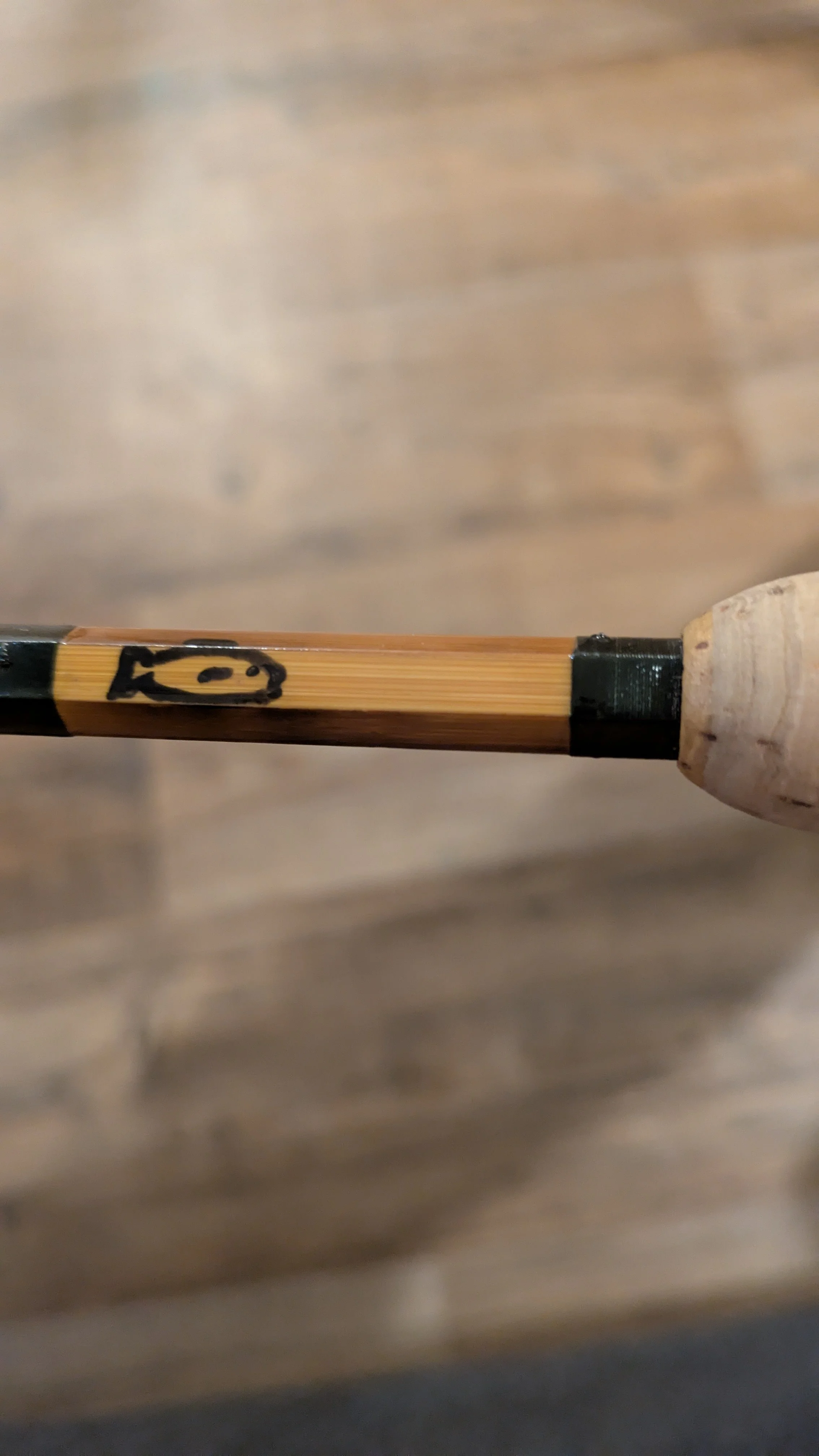 However, on the good ol’ eBay I came across an odd rod. It was an eight foot 4wt bamboo rod that looked like it had never been fished. Let me tell you, one doesn’t come across a 4wt or lower bamboo rod too often and they are sought after. The seller was obviously an estate sale re-seller and he didn’t have too much of a handle on how to describe the rod. Yet, he was amazing in the fact that he took pictures of every wrap job, every ferrule, every side of each piece of the rod, the cork and the reel seat, both tips. He may not know what goes into the fly rod but he sure knows how to sell one. The one thing that really stood out to me though was that the only mark that could have signified the maker was a little drawing of a fish, one that a child would do or that you see on a bumper stick with “Jesus” written in the middle. I ended up in a bidding war that finished at around $400, which is a bit absurd for a rod obviously made by a hobby builder and who really knew what the quality of the build itself was. I lost that auction, and I am glad I did.